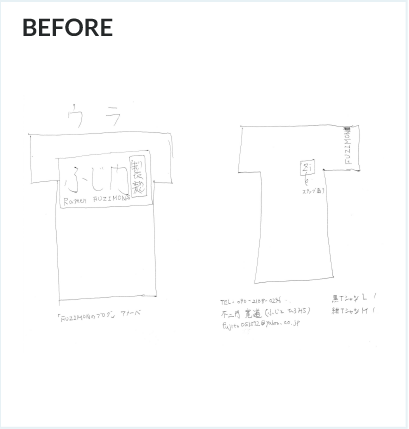 ■手描き、もしくは全体のイメージとしてどのように配置したいかをご指示いただくだけの簡単オーダーです。デザイナーがバランスを整え、プリント用のデザインに仕上げます。